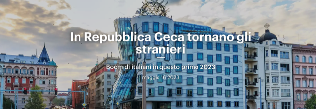 L’Italia risulta al 5° posto della classifica del primo quadrimestre 2023 del turismo estero in Repubblica Ceca. Escludendo i Paesi limitrofi e logisticamente favoriti il Belpaese è secondo solo alla Gran Bretagna. Nei primi quattro mesi dell’anno le strutture ricettive ceche hanno registrato 1,7 milioni di arrivi da tutto il mondo, con un aumento dell’87% rispetto allo stesso periodo del 2022.