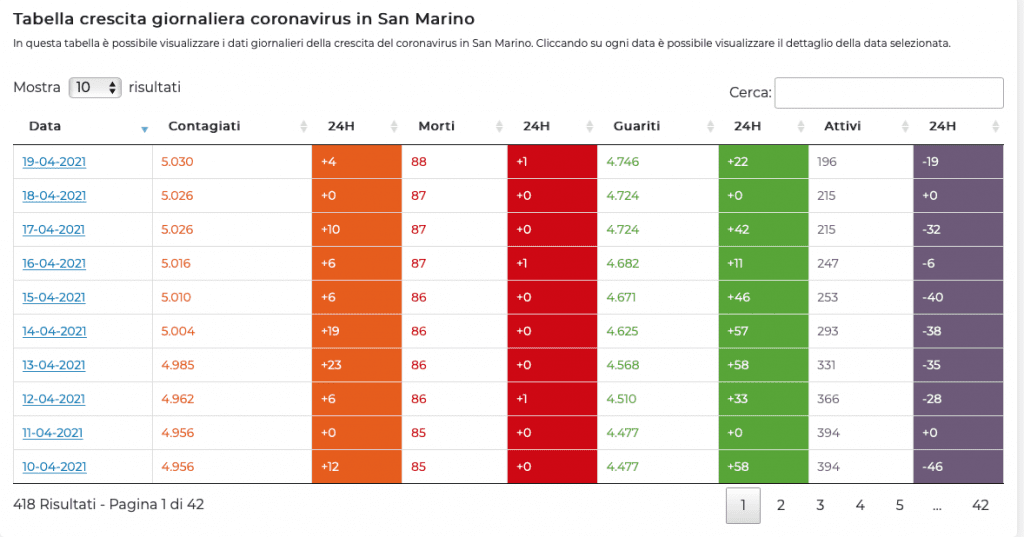 La nota con il successo della vaccinazione è stata diffusa dalle autorità sanitarie Sanmarinesi e ripresa da altre agenzie di stampa. Lì Il 40% della popolazione ha ricevuto almeno una dose del vaccino e il 25% entrambe le dosi. La repubblica romagnola conta circa 34 mila abitanti con circa 5 mila contagiati e 88 morti. L’Emilia Romagna ha 4,45 milioni di abitanti 359 mila contagiati e 12.640 morti. Quindi San Marino ha il doppio dei contagiati in relazione alla popolazione (12,3 contro 6,8) e circa lo stesso numero di decessi (1 ogni 386 abitanti contro 1 ogni 352 della Regione). Ma non la domenica.
