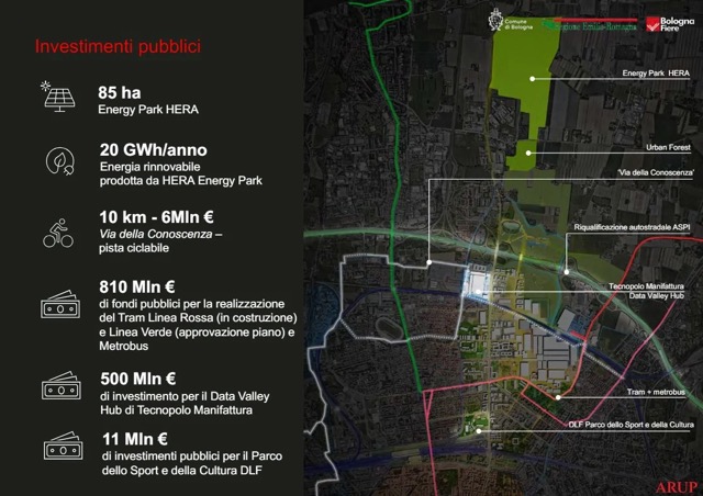 Per la realizzazione del Distretto è già stato stanziato più di 1 miliardo di euro di investimenti pubblici (per la realizzazione del Tecnopolo, linea rossa del Tram, Metrobus, Via della Conoscenza e il parco del DLF) e si stimano investimenti privati potenziali di eguali dimensioni.