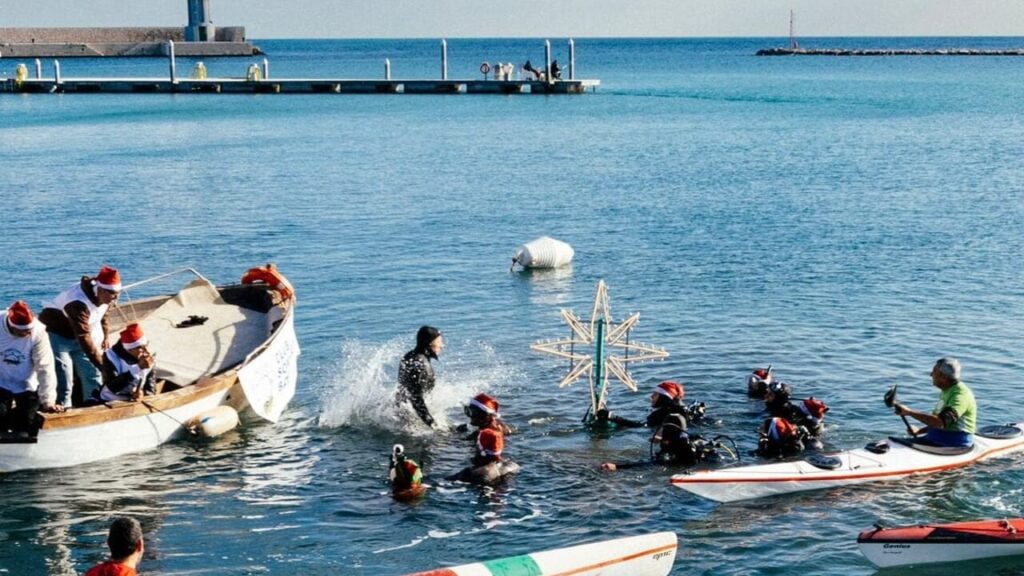 Il “Christmas Dive 2025” ha portato il Natale nelle profondità del mare di Bari con l’accensione del primo albero di Natale subacqueo della città, installato l’8 dicembre nello specchio d’acqua antistante il molo San Nicola dal Club Sommozzatori Bari, con il patrocinio del Comune.
